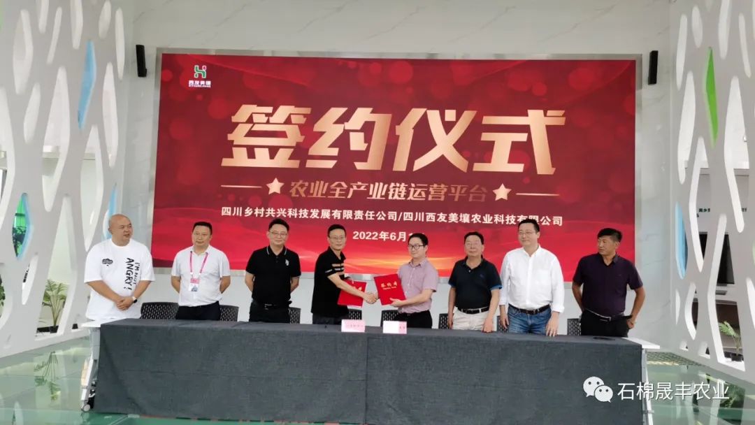 6月1日,四川鄉村共興科技發展有限責任公司與四川西友美壤農業科技有限公司在我司現代農業園區完成了項目合作簽約儀式。雙方致力打造四川農業全產業鏈運營平臺,該平臺將整合資源將石棉縣打造成為川西地區農業新媒體電商孵化中心,農產品精加工中心,現代農業智能設備研發中心,農業信息大數據中心,農產品集散物流中心,現代農業技術服務中心。